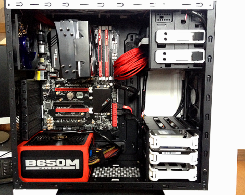 Power LEDがケース前面に広く取り付けられているので、オシャレな雰囲気を醸し出しています。また、横窓も中々見晴らし良好です。上面・前面・底面にダストフィルタが設けられているため、ある程度埃対策も取られている点は嬉しいですね。