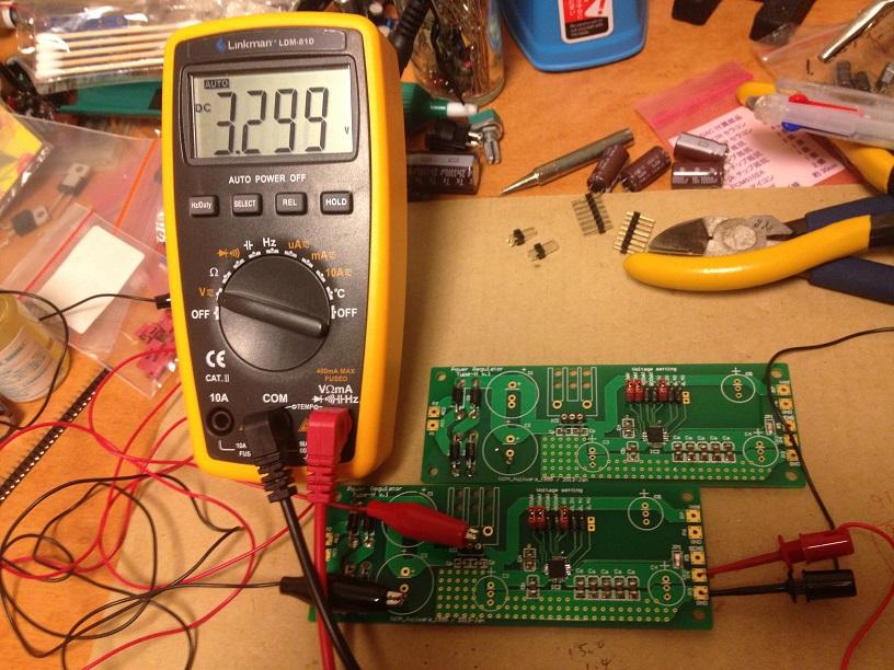 1枚目の基板は3.3V出力OK.