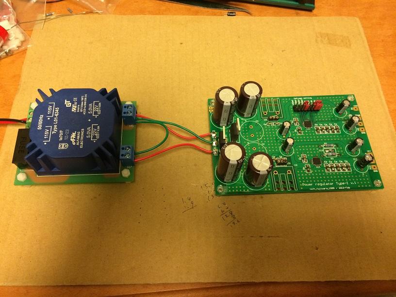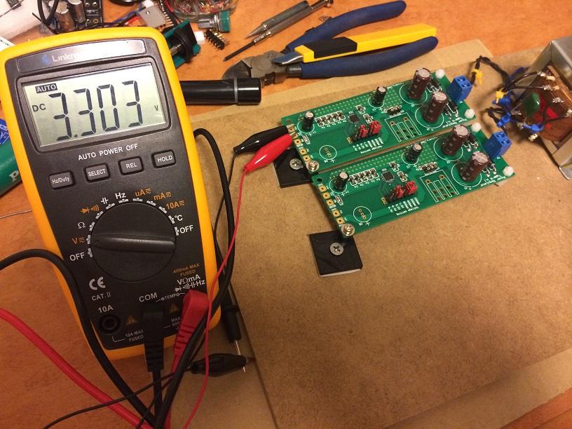 電源基板がようやく完成したので、いよいよDAC基板への通電試験へ。