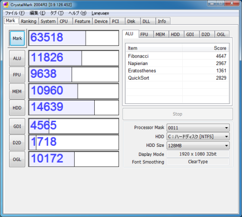 Celeron847より僅か劣っていますが、個人的には予想よりは速いと思っています。