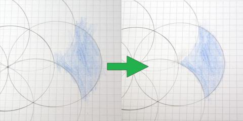 鉛筆描きと混ざっているような場合はこすらず、ドライヤーなどで熱を加えた方が良さそうです。