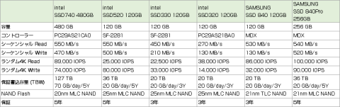 ただし、他社製品のTBWは20~36TBが一般的な数値ですので、SSD730 480GBは他社製品に比べて3.5~6倍も総書き込み容量が多い、高信頼性のSSDとなっています。