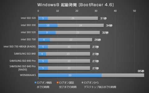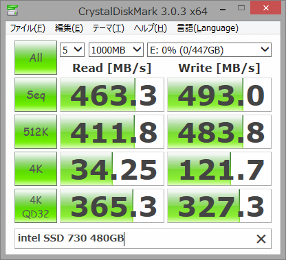 SAMSUNGのSSD840 Proも優秀なスコアですが、読み込みは0.046秒となっており、intel SSD730の0.33秒がいかに圧倒的な数字かというのが解るかと思います。