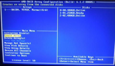 RAID設定用にちょっぴり領域を取られてしまっていますが、959GBとほぼ480x2の容量のストレージが1台分として出来上がりました。