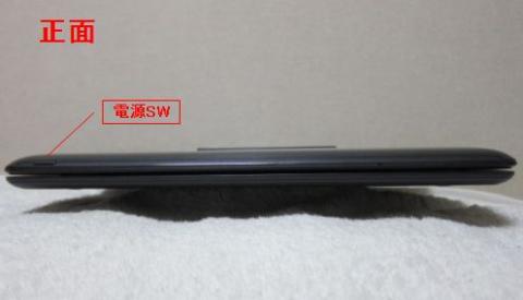 電源SWは,タブレット部の左上になります.ONするとインカメラ隣のLEDが点灯します.