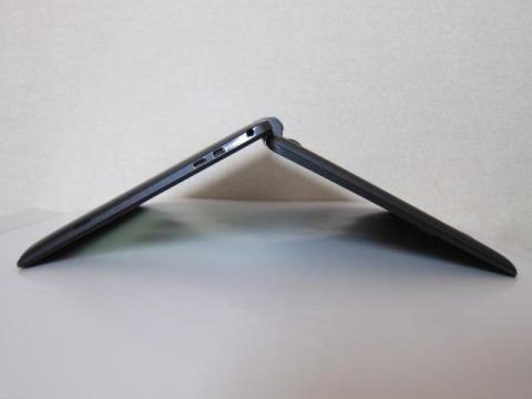全体的な印象は,価格に割には良くできていると思います.決して高級感のあるデザインでも,材質でもありませんが,通常用途においては十分です.トップ面(タブレット裏面)の光沢加工は,汚れが付きやすく,かつ目立ちますが,滑りやすい感じはありませんし,タブレットとしても,ノートPCとしても,持ちやすいです.