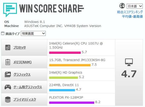 Vivo-PCと比較して,遜色ありません.グラフィックスがちょっと弱いですが,逆にCPUは速いです.