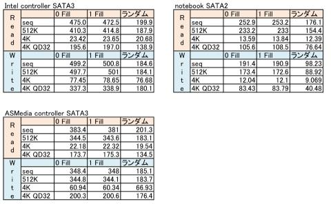 IntelコントローラーとASMediaコントローラー、SATA2接続notePCとなっております。