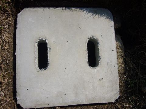 以前からヒビが入っているのは分かっていましたが、先日の大雨で危険防止の為に乗せていた板が浮いているのを見て下水が詰まっているので、会所の蓋を取ると完全に壊れてしまいました。