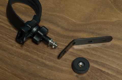 ロールバーマウントの雲台をバラシて、ワッシャーとスプリングワッシャーを追加し、ステーを固定します。