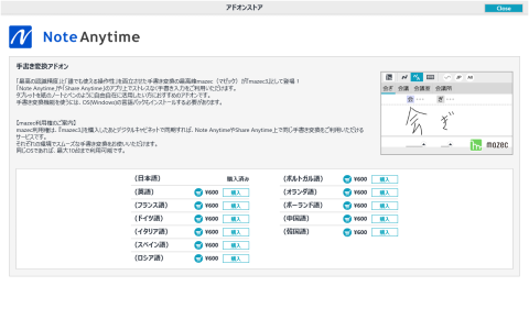 各アプリの右上「オプション」から「アドオンストア」で購入できます。