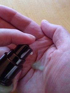手のひらに数回プッシュして、適量を出し顔全体に拡めハンドプレスしてなじませます