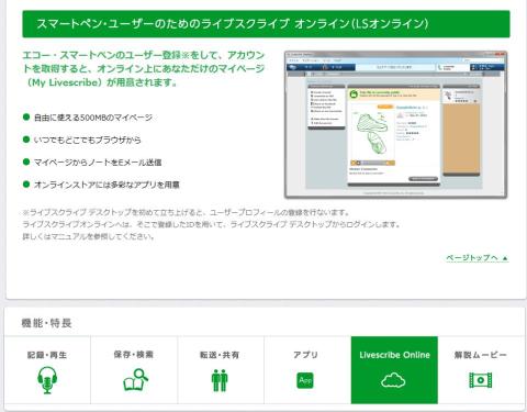 ライブスクライブ オンラインの機能としてはこのような内容です。