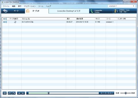 そのセッションを Livescribe Desktop の「オーディオ」画面で「ページを表示」している