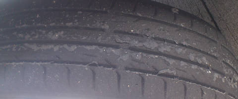 スリップサインが出てきたくらいのタイヤで走りましたが
