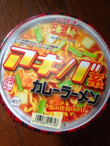 中身は外見とは裏腹にしっかりとしてます。スープは後入れの粉末とペースト。すべて麺本意の構成でしょうか。秋葉系とした理由は、「アキバはカレーとラーメンの激戦区だから」だそうです。そんなに凄い店も無いと思ってしまいましたが。(失礼)また、唐揚げ状の揚げ玉が入っています。私は秋葉系の一番の理由はこの揚げ玉だと思います。