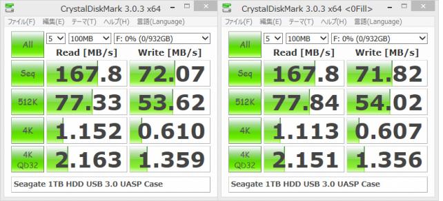 セットトップボックスから外したHDDを入れて、Crystal Disk Markを走らせてみました。