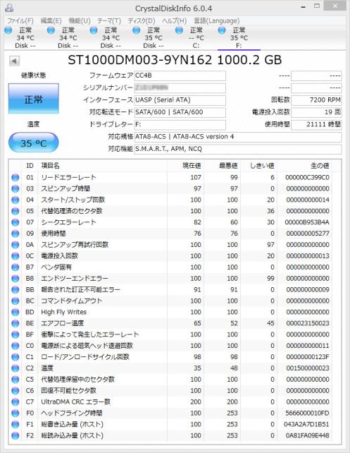 搭載しているHDDのDisk Info.も正しく表示されます。