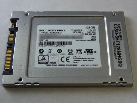 CDIで取得できる型番は「THNSNJ128GCSU」でファームは「JURA0101」。上記海外東芝パッケージ版HG6Qが「THNSNJ128GCST」でファームが「JTRA0102」。末尾が若干異なり、ファームのバージョンも違うのかもしれない。