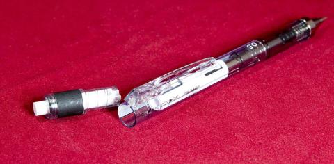 芯の交換は、黒い部分を持って引き抜けば消しゴム部分が取れます。