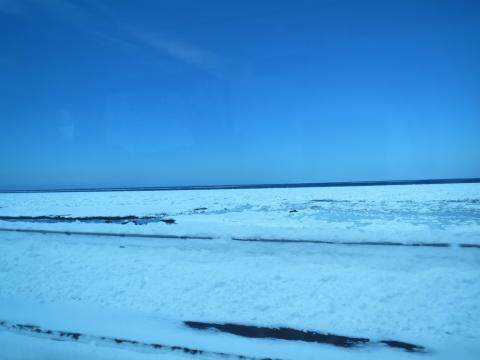 そんな過酷そうな時期ですが、この時期は流氷が流れ着いていてその上を歩けちゃう時期なんです。