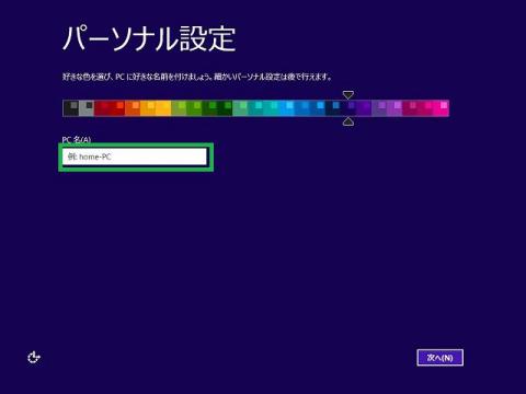 3.「パーソナル設定」を「基本操作画面での基本配色」を選択し「PC名」を記載します。
