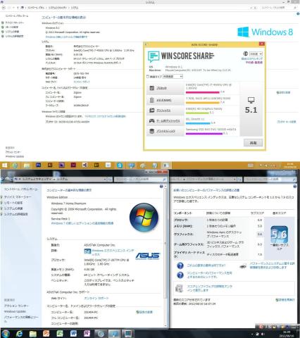 ※Windows8.1上ではWindowsエクスペリエンスインデックスを表示することができません。 そこで「WIN SCORE SHARE」と呼ばれるソフトウェアにて「Windowsエクスペリエンスインデックス」を表示させました。