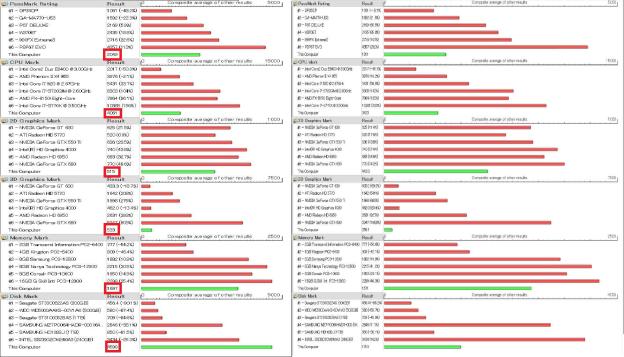 最後に「PerformanceTest」という細かな総合数値を計測するツールを使用し、今回のレビュー対象と比較対象がデスクトップのどのあたりにあたる製品なのか見ていこうと思います。