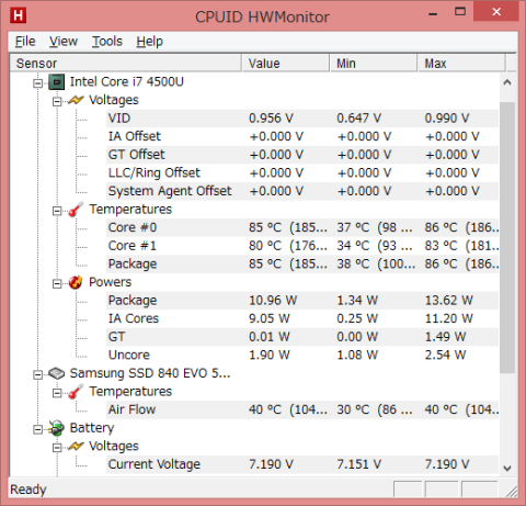 HWMonitor CPU温度などを測れる。不正な値が出やすいAMDのCPUなどに最適
