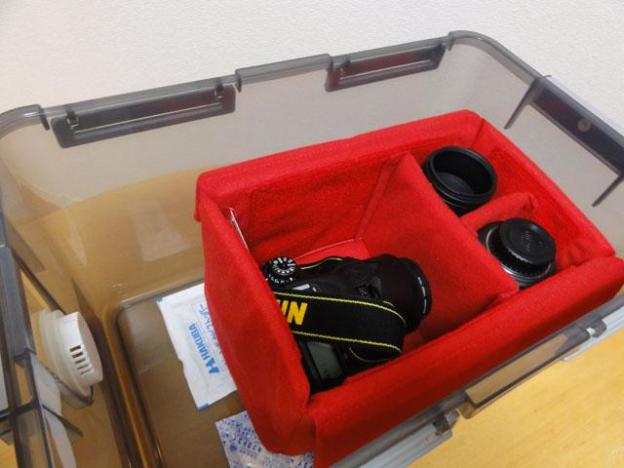 普段カメラの保管は、プラスチックの密閉ケースに入れているのですが、そのまま入ります。