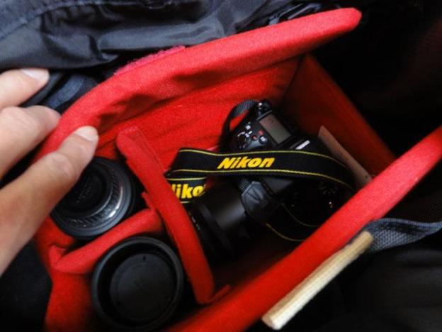 こんな感じで、普段使いのバッグがカメラバックに変身しました。