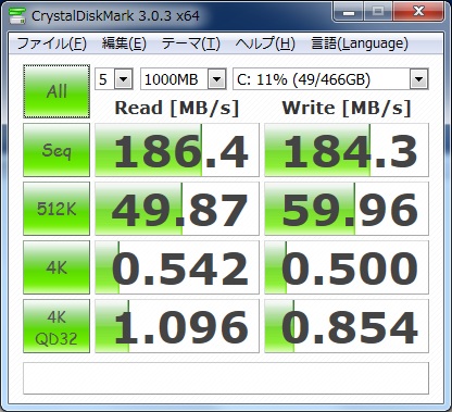 HDDとSSDの両方で比較してみましたが、あまり差はなかったです。