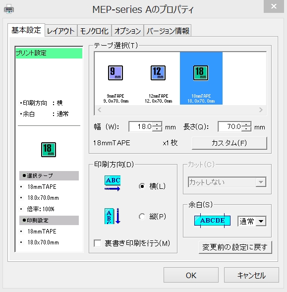 対応のテープ幅は18mm、12mm、9mmで用紙の色だけでなく