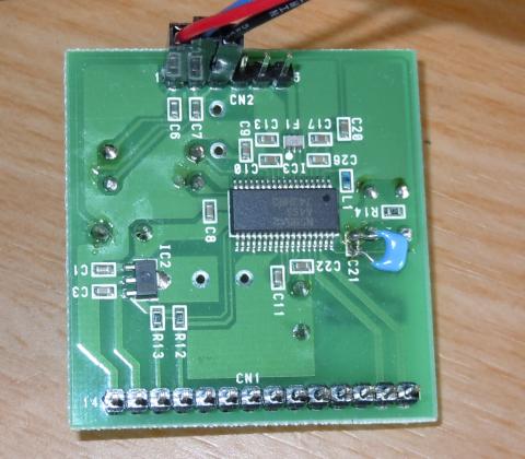 という感じになってて、RFフロントエンドが1chip、I-Q相の高速ADC+USB I/Fで1chip、PCでOFDMデコード、MPEG4デコード、再生を行っています。