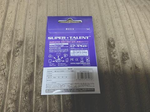 SUPER TALENT製の16GB SDHCメモリーカードで、アーキサイト扱いの国内正規品となっています。一応Class10の表記はありますが、特に速度面での優位性を謳うような記述はありません。