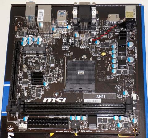 以前おまけのみにつられて購入したSempron 2650。これを使うにはマザーが必要ということで、MSIのAM1Iをチョイス。AM1マザーは主要ベンダー4社から発売していますが、あまり差別化はされておらず、どれを買ってもあまり差はないと思います。あえて言うなら、AsRockのAM1H-ITXがDC-inコネクタがあって面白いというくらいでしょうか。その分他社製品に比べて頭ひとつ高いわけですが、個別でAC-DC電源を追加するよりは安いですね。そんなデフォルトで無音PCを作れるAM1H-ITXを避けてMSIのAM1Iを選んだ理由は、Mini-PCIeコネクタがあるからです。今回は無理やり使ってみたいパーツがいくつかあり、それらすべてを使うのに都合が良かったのがAM1Iというわけです。