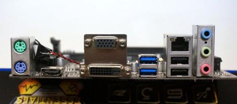 穴ふたつのソケット周り。なんか大きめに場所をとっているのを見ると、他のパーツの配置はどうにかできなかったのかと思います。バックパネル側にUSB2.0のコネクタがあるのも使いづらそうなんですが……。