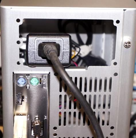 本当はACアダプター前提のHTPC風ケースを買う予定だったのですが、買えなかったのでJONSBOになったんですよね。SFX電源を使用するケースとはいえ、ACアダプターを使うと無駄に広いスペースができます。ここに収納BOXでも増設できそうですね^^;