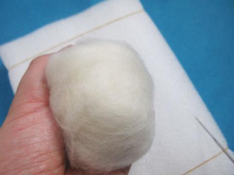 練習あるのみーまずは「ニードルわたわた」を12×15cm×2ケと予備にカット「フェルト羊毛(白)」を15cmにカットし必要分を分け芯に巻きつけてチクチク羊毛をほぐすのが甘かった模様…どうなる(汗