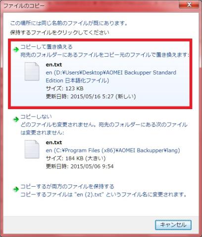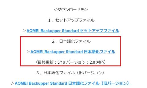 この頁の「AOMEI Backupper Standard 日本語化ファイル」をクリック。