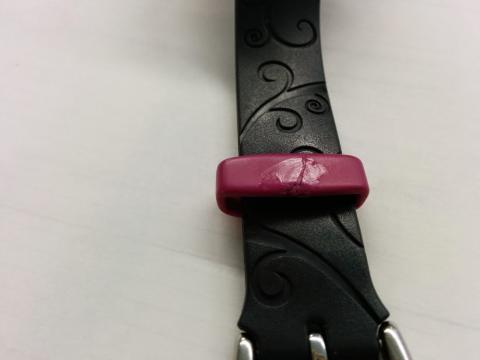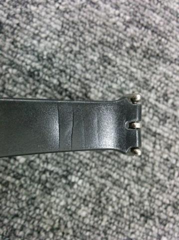 よく見ると分かると思うのですが、バンドを押さえるための留め具が切れて、外れてしまったのです。小さな部品ですが、これが無いと収まりが悪い。