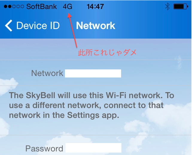 こゝでiPhoneがWi-Fiに接ながってることを確認。ぼくの場合此所が,つまりiPhoneの左上画面に電波のマークがなくて「4G」と表示されてたのでした。今では「4GはWi-Fiではない」とわかってますが,4Gが何かは未だわからず。