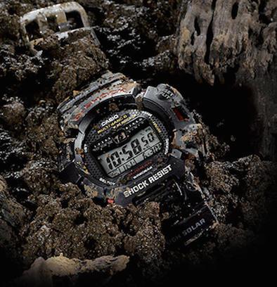全体がラバーでコーティングされているので、普通のG-SHOCKのように、耐衝撃 防水だけで無く、泥などの微細粒子が、ボタンのすき間に入り込む事などを防いでくれます