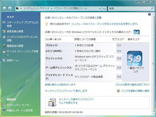 Windows エクスペリエンスインデックス 5.9 (Vista 最高値5.9)