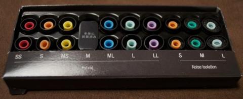 EX1000に付属するイヤーピースはハイブリッドイヤーピース7種類、ノイズアイソレーションイヤーピース3種類の計10種類あります。