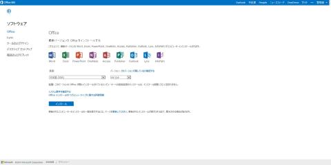 Office365の導入ページにアクセスすると自分のアカウントでPCにインストールできるOffice製品が以下の様に表示されます。