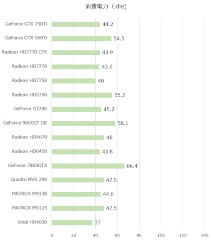 しかしそれでも所詮はGeForce8XXX世代のシロモノ。グラフに並べた他のVGAに対して1歩どころか2歩3歩低いスコア。最近のCPU内蔵グラフィックスはもちろんHD6450にも余裕で負ける。