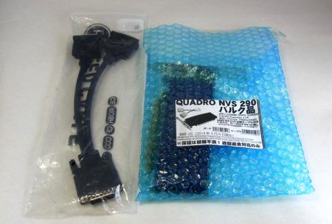 現品はBUYMOREで1980円で大量放出されていたモデルで、しっかりDMS59→DVI-I*2への新品ケーブルが付属している。店のツイッターでも「DMS59ケーブル1本より安いw」とケーブル付属を売りにしていたくらいだ。