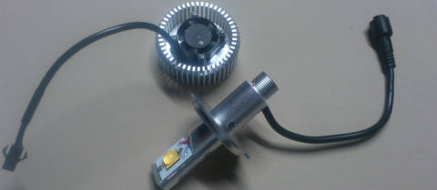 5、LEDバルブの冷却フィン/ファンを取り付ける。