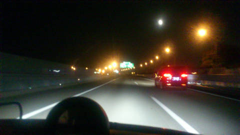 高速道路乗り換えの反射板(黄色)が全部光っていますよね。